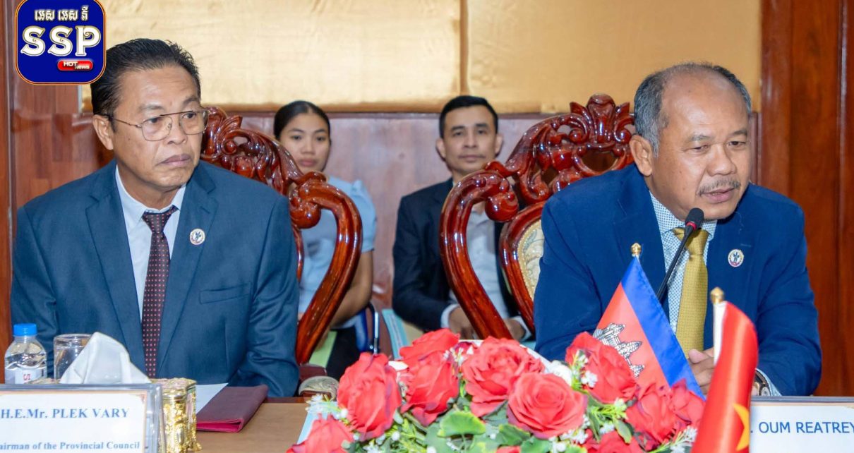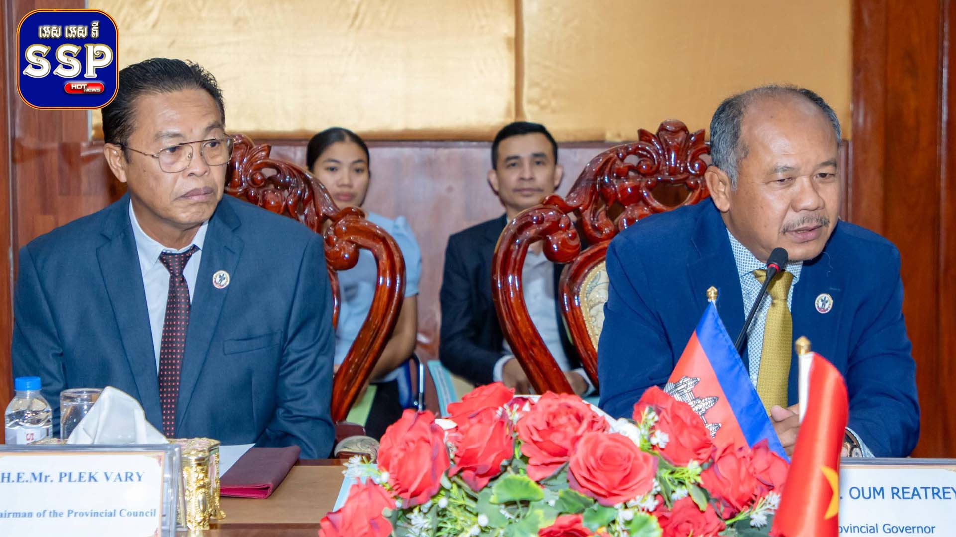 បន្ទាយមានជ័យ៖ ឯកឧត្ដម ប្លែក វ៉ារី ប្រធានក្រុមប្រឹក្សាខេត្ត និងឯកត្តម អ៊ុំ រាត្រី អភិបាល នៃគណៈអភិបាលខេត្តបន្ទាយមានជ័យ បានអនុញ្ញាតជូន ឯកឧត្ដម ត្រឹន ទួនអាញ អគ្គកុងស៊ុលវៀតណាម ប្រចាំ ខេត្តបាត់ដំបង ចូលជួបសម្តែងការគួសម និងពិភាក្សាការងារ នៅសាលប្រជុំ ខ នៃសាលាខេត្តបន្ទាយមានជ័យ នាថ្ងៃទី២០ ខែមីនា ឆ្នាំ ២០២៦។