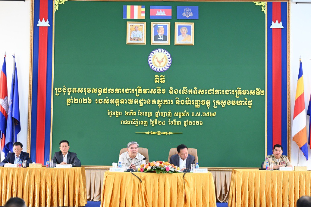 ជាកិច្ចចាប់ផ្តើម ឯកឧត្តម រដ្ឋលេខាធិការ ក្រសួងមហាផ្ទៃ បានឯកភាពលើរបាយការណ៍ស្តីពីការបូកសរុបលទ្ធផលការងារត្រីមាសទី១ និងលើកទិសដៅការងារត្រីមាសទី២ ឆ្នាំ២០២៦ របស់អគ្គនាយកដ្ឋានភស្តុភារនិងហិរញ្ញវត្ថុ ព្រមទាំងកោតសរសើរ និងវាយតម្លៃខ្ពស់ចំពោះថ្នាក់ដឹកនាំអគ្គនាយកដ្ឋានភស្តុភារនិងហិរញ្ញវត្ថុ គ្រប់លំដាប់ថ្នាក់ដែលបានខិតខំយកចិត្តទុកដាក់បំពេញការងារតាមភារកិច្ចរៀងៗខ្លួននាពេលកន្លងមក។